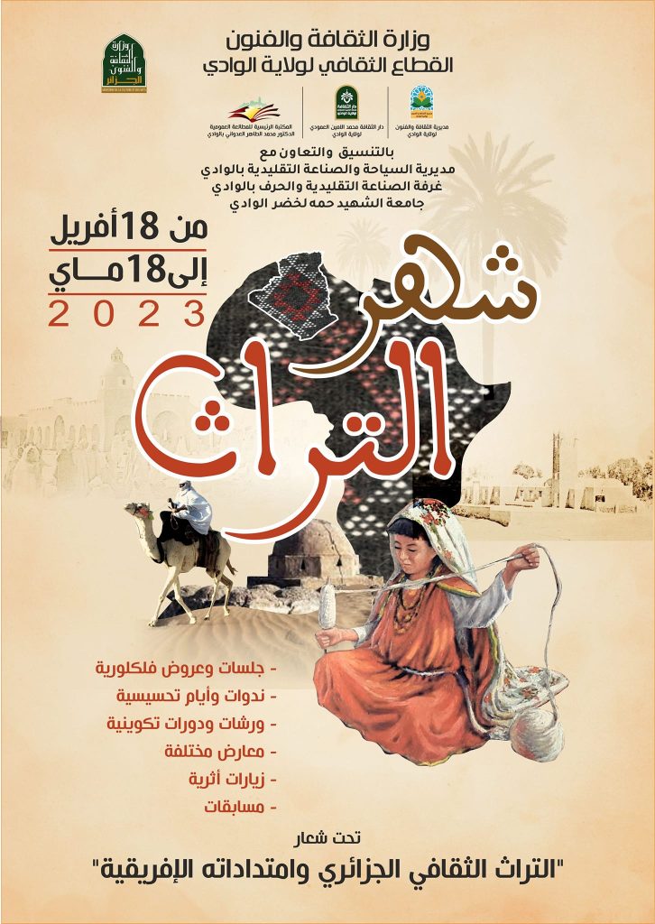 احتفاء بشهر التراث الممتد من 18افريل الى 18 ماي 2023 تحت شعار “التراث الثقافي الجزائري وامتداداته الافريقية”